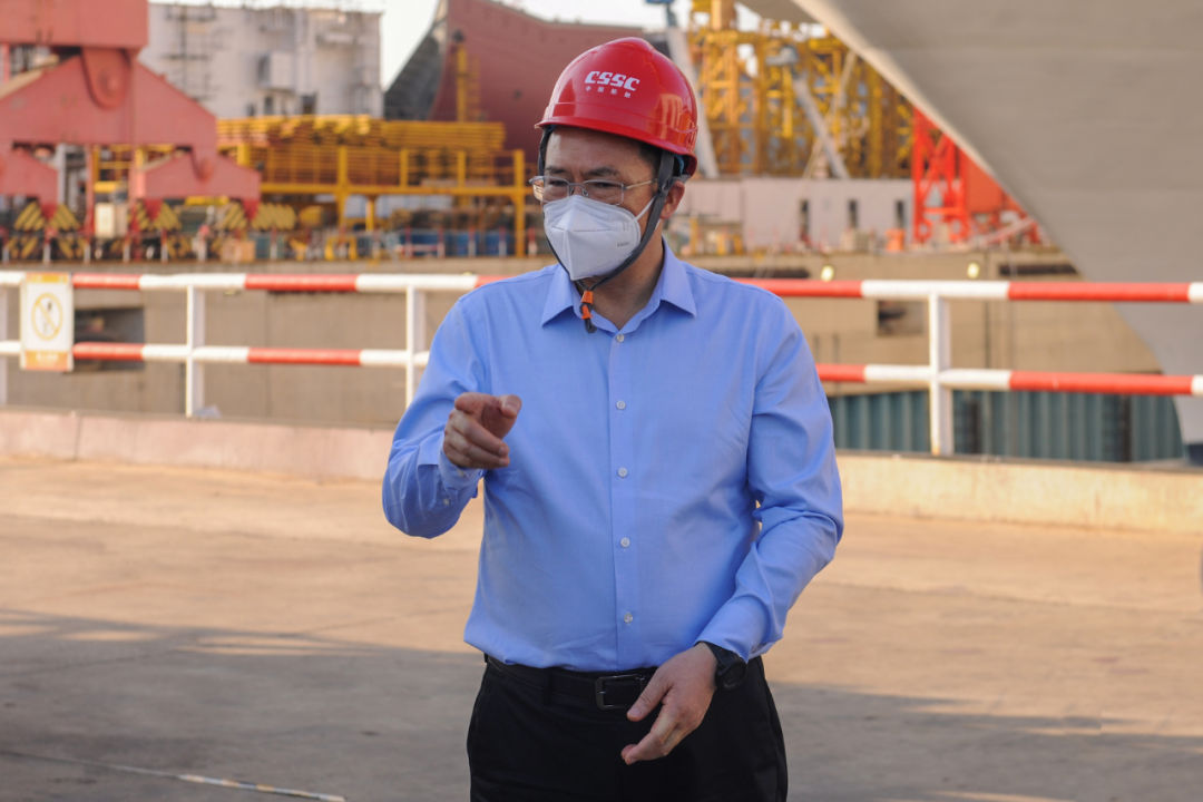 5月5日,中國(guó)船舶集團(tuán)有限公司黨組副書(shū)記、總經(jīng)理?xiàng)罱鸪傻郊瘓F(tuán)公司旗下上海外高橋造船有限公司調(diào)研疫情防控和復(fù)工復(fù)產(chǎn)工作。中國(guó)船舶集團(tuán)黨組成員、副總經(jīng)理孫偉參加調(diào)研。