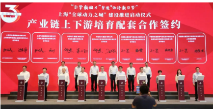 儀式上,臨港新片區管委會與中船動力集團、中國航發商用航空發動機有限責任公司、上海航天技術研究院、上海汽車集團股份有限公司、中國聯合重型燃氣輪機技術有限公司等主要負責人簽署深化戰略合作框架協議。上述企業同時與各相應領域2-3家企業簽署培育合作協議。