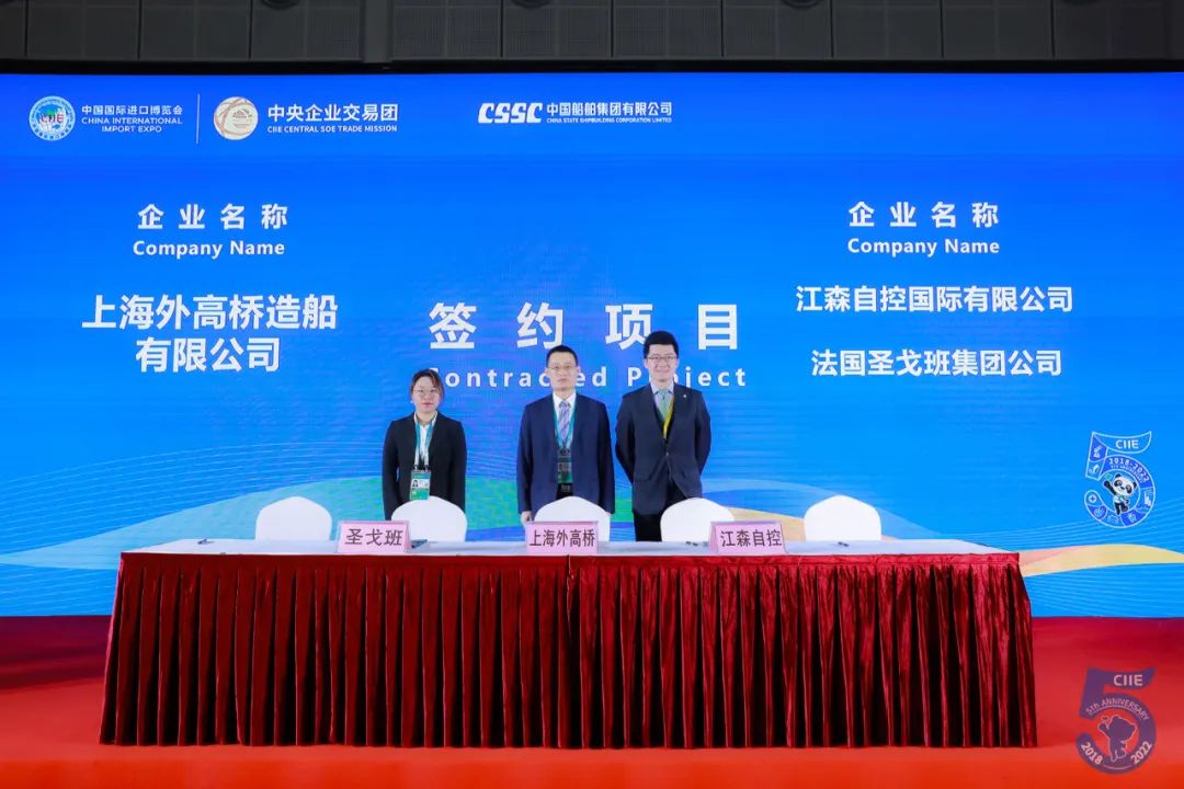 第五屆進博會期間,中國船舶集團旗下8家企業與18家國際合作伙伴先后進行21個項目的集中簽約,累計總金額達4.5億美元,同比增長205.5%。項目涉及柴油機組、發電機組、船用吊機、通導系統、電力推進系統、數字化網絡設備、LNG供氣系統、殷瓦鋼、再液化裝置等船舶建造領域的各類重要配套設備,為國際交易市場和全球供應鏈的日益繁榮貢獻中國船舶力量。