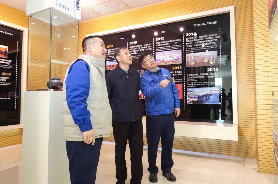 在外高橋造船展廳,溫剛聽取了外高橋造船發展歷程、戰略定位和主建產品等內容的匯報。在國產大型郵輪首制船建設現場,溫剛聽取了建造進度匯報,并安排部署下一步工作。座談會上,溫剛聽取了外高橋造船高質量發展戰略、生產經營情況及黨建重點特色工作的匯報。