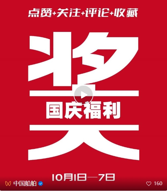 國慶7天樂,我們一起歡度國慶,中國船舶集團新媒體平臺抽獎啦!