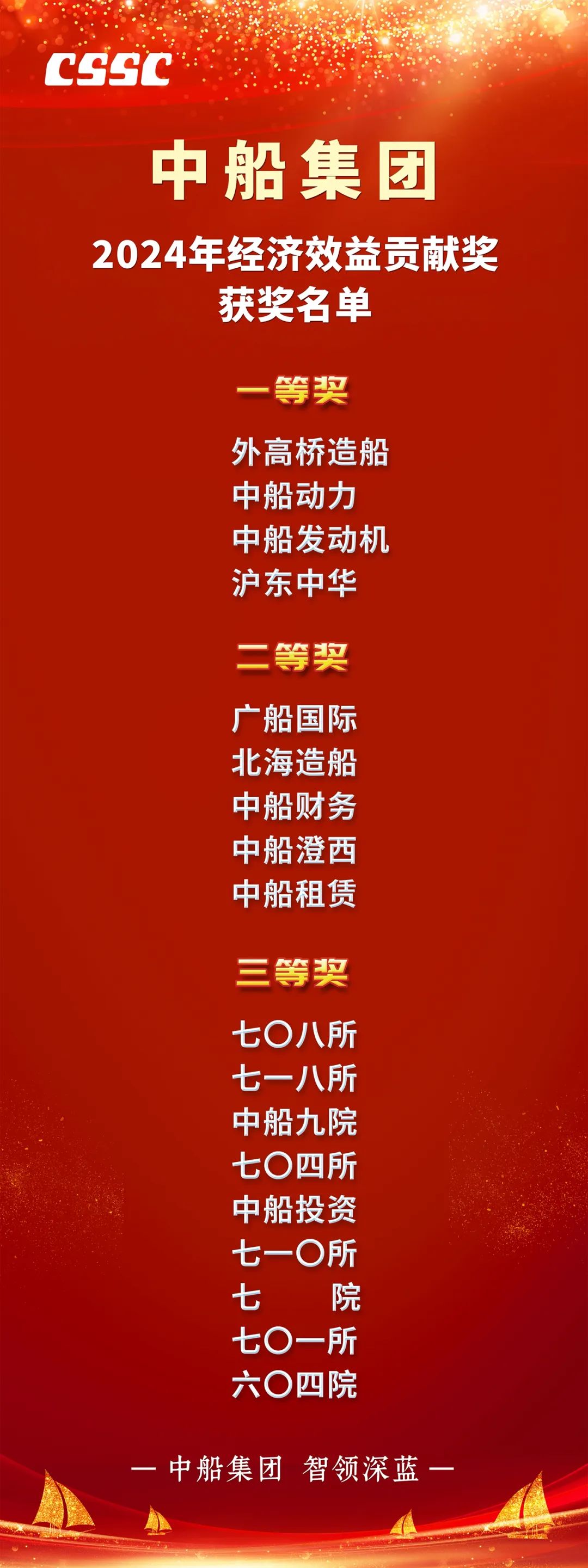 2024年,面對(duì)復(fù)雜多變的外部環(huán)境和不確定因素,中國(guó)船舶集團(tuán)有限公司各二級(jí)管理單位著力拓市場(chǎng)、強(qiáng)管理、抓改革、增效益,實(shí)現(xiàn)了量的合理增長(zhǎng)、質(zhì)的有效提升,整體經(jīng)濟(jì)效益再創(chuàng)新高。為樹(shù)立典范,表彰先進(jìn),經(jīng)中船集團(tuán)黨組研究,決定授予外高橋造船等18家單位2024年中船集團(tuán)經(jīng)濟(jì)效益貢獻(xiàn)獎(jiǎng)。