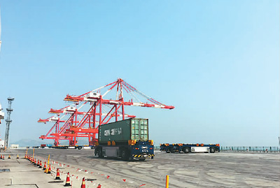 圖為AGV在洋山港四期工程試運行。