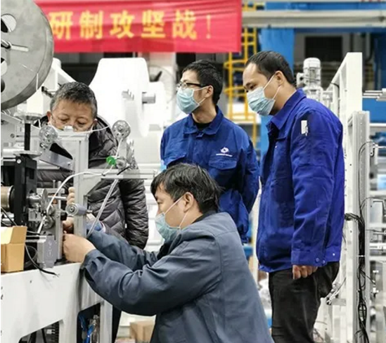 ???2月12日,中國船舶集團所屬八院鵬力(南京)塑造科技有限公司,接到集團公司緊急通知,需研制完成31套平面口罩機生產線。口罩機?這是鵬力塑造有史以來從未接觸過的陌生領域。但本著與時間賽跑、與病毒搶奪生命的精神,干就是了!