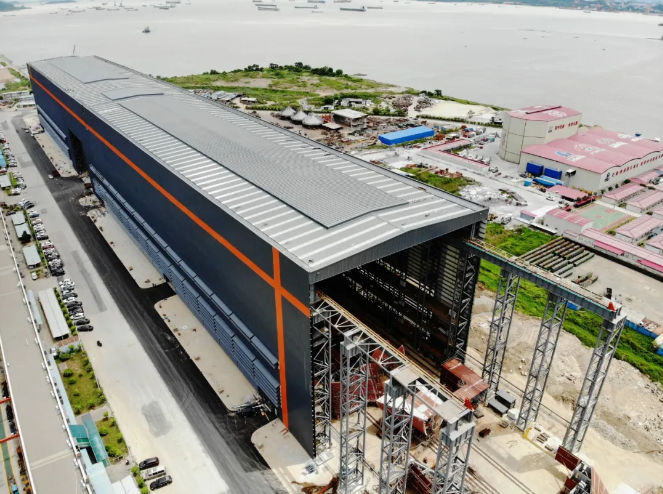 國內最高、跨度最大的室內船臺正式完工移交!