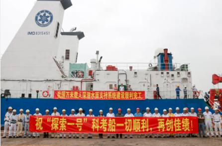2020年4月23日,“探索一號”搭載無人深潛器“海斗一號”赴馬里亞納海溝執行TS-17深淵科考航次任務。