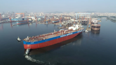日前,中國船舶集團(tuán)旗下大船集團(tuán)生產(chǎn)捷報(bào)頻傳,實(shí)現(xiàn)一船命名、一船出塢。30.7萬噸超大型油船(VLCC)“中船湖南”號命名,全球首艘雙燃料超大型油船出塢。
