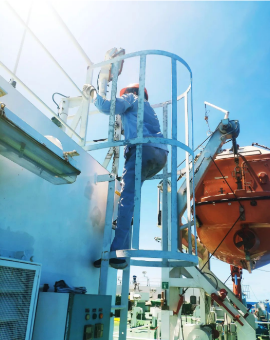 三伏天的太陽把船舶甲板曬得滾燙,鋼板溫度近70度,在甲板上工作的員工無法躲避強光與熱浪,只能如此進行物理降溫。