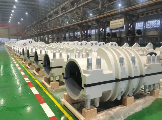 武漢船機承制了乳山口跨海大橋索鞍、索夾兩個項目。其中,索鞍已于2023年10月全部交付。本次承制的索夾共19種類型180套,前期已按現場需求陸續發運2批次共146套,該批次的發運意味著該項目已全線完工。