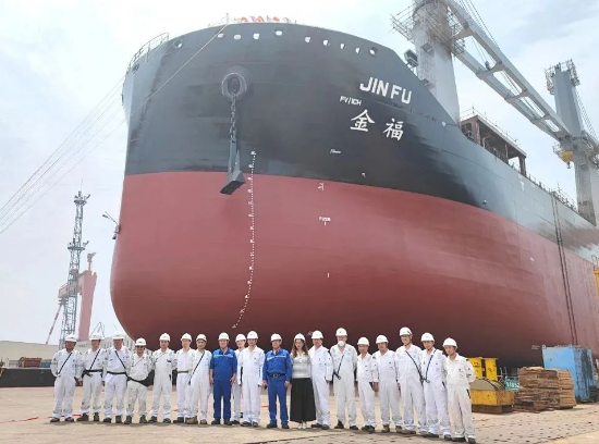 近日,中船澄西為交銀金租建造的62000噸重吊船勝利下水。該船作為系列船的第3艘船,實現了15天艉部貫通,21天主船體一條龍,25天拉線望光,47天高質量船臺下水的好成績。