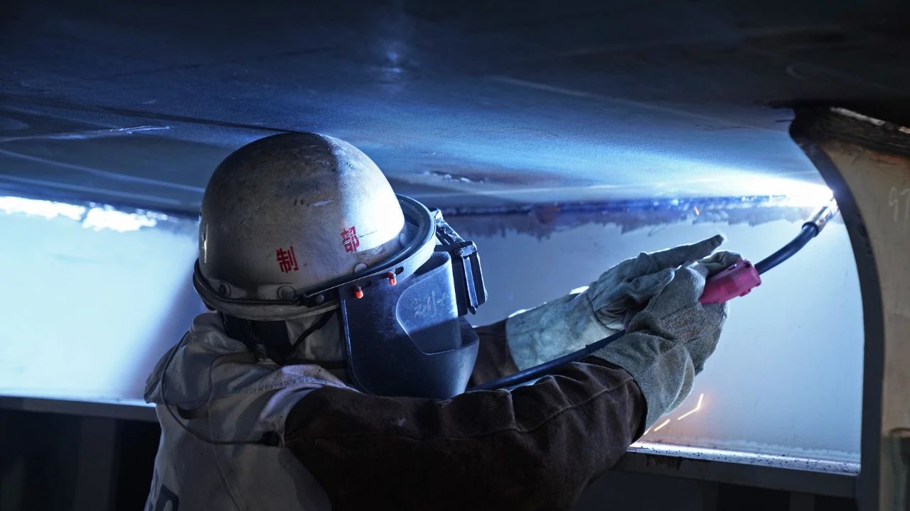 廣船國際——焊工正在開展分段焊接施工。