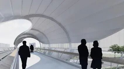 中船九院建筑創作室作品“流影橋”在浦東新區川南奉公路—祝潘公路人行天橋品質提升中獲得第三名。