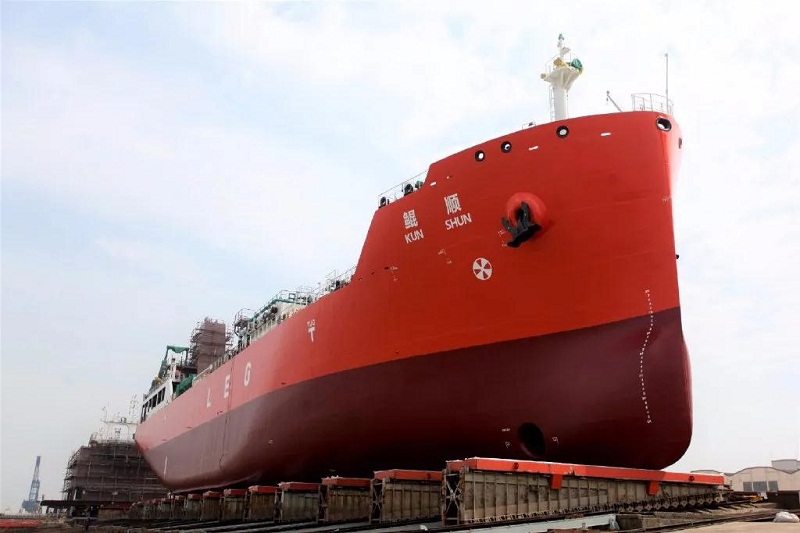 ????近日,中國船舶集團七〇八所為招商南油設(shè)計的新型6500立方米乙烯運輸船,在南京成功下水。該型船是在此前七〇八所為招商南油設(shè)計的6500立方米乙烯運輸船“雁順”輪基礎(chǔ)上,對全船總布置、船體線型、船體結(jié)構(gòu)等進行了全面優(yōu)化升級后推出的最新一代6500立方米乙烯運輸船型。為進一步提高操縱性,新型6500立方米乙烯運輸船增加了首側(cè)推和全懸掛高效舵。此外還配備了七〇八所自主開發(fā)設(shè)計的高效率螺旋槳和新型節(jié)能裝置,進一步提高了快速性,降低了油耗。同時該船嚴(yán)格按照IGC規(guī)則(國際散裝運輸液化氣體船舶構(gòu)造和設(shè)備規(guī)則)進行設(shè)計,是一艘“綠色、經(jīng)濟、安全”的乙烯運輸船。