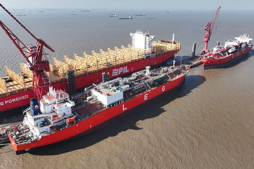 12月16日,由中國船舶集團旗下江南造船為西南海運公司建造的99000立方米超大型乙烷運輸船“GAS CAMELLIA”號和“GAS JESSAMINE”號舉行雙船命名儀式