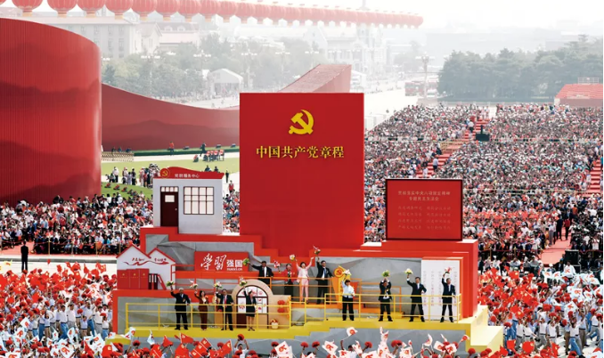 ▲2019年10月1日上午,慶祝中華人民共和國成立70周年大會(huì)在北京天安門廣場(chǎng)隆重舉行。這是群眾游行中的“從嚴(yán)治黨”方陣。新華社記者 蘭紅光/攝