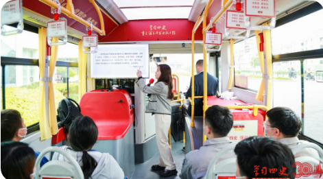 紅色巴士從浦東開發(fā)陳列館出發(fā),講解員帶領(lǐng)“乘客”一路學(xué)習(xí)小陸家嘴地標(biāo)背后的故事,感受國際金融中心的崛起,回顧浦東從阡陌農(nóng)田到高樓林立30年的發(fā)展歷程。窗內(nèi)窗外,歷史故事與魔都?xì)庀蠼豢棧呅熊嚒⑦厖⒂^、邊講課、邊互動(dòng)的學(xué)習(xí)形式,讓“四史”學(xué)習(xí)的過程更具代入感。本次“四史”學(xué)習(xí)不僅激發(fā)了青年的拼搏意志,增強(qiáng)了對(duì)城市發(fā)展及企業(yè)改革的認(rèn)同感,更堅(jiān)定了崗位立功的理想信念,引領(lǐng)青年不懈努力,為企業(yè)高質(zhì)量發(fā)展匯聚奮進(jìn)力量。